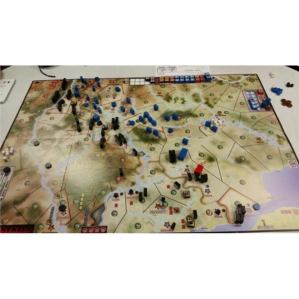 The rules are easy, players can start playing the game without too many rules to remember and the game is 4 turns long (1-3 hours) taking place from August to November.