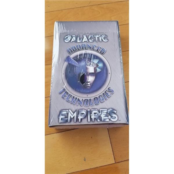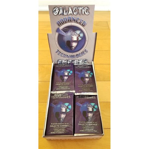 This is a sealed, untouched display of 36 Booster Packs Series VI Advanced Technologies Edition to build out your Galactic Empires decks or just to collect the cards for their incredible Sci Fi Art.