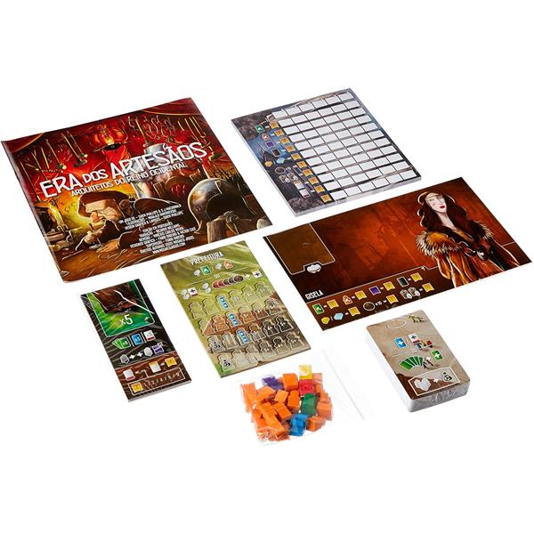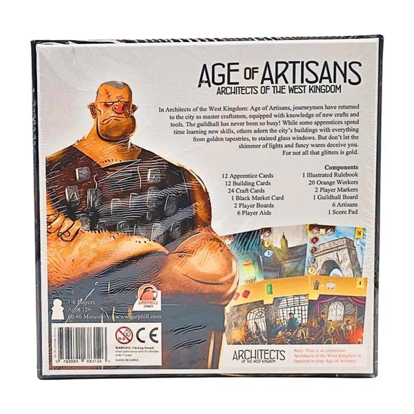 In addition to including components for an extra player, Age of Artisans adds the new Craft Cards, a dual-layered Guildhall Board, two new Player Boards and a variety of new Apprentices and Buildings.