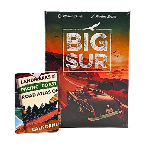 In Big Sur, players draft cards to use them either as resources to build new road sections or as the road sections themselves. Your linear path of cards will score for connecting terrain types and meeting other conditions. You can also add notable landmarks to your highway for other unique scoring conditions; these landmarks are based on actual scenic lookouts and locations on Big Sur.