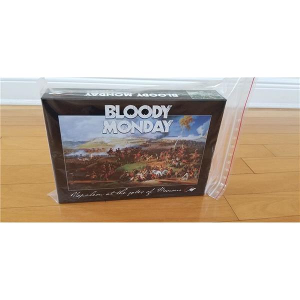 Bloody Monday gives both players a range of challenging decisions... each impulse of every turn. Wooden blocks and colorful PVC stickers represent your troops and the command structure, providing both easy bookkeeping of unit strength and abilities, plus "fog of war" that forces players make choices without knowing more than a commander gets to know.