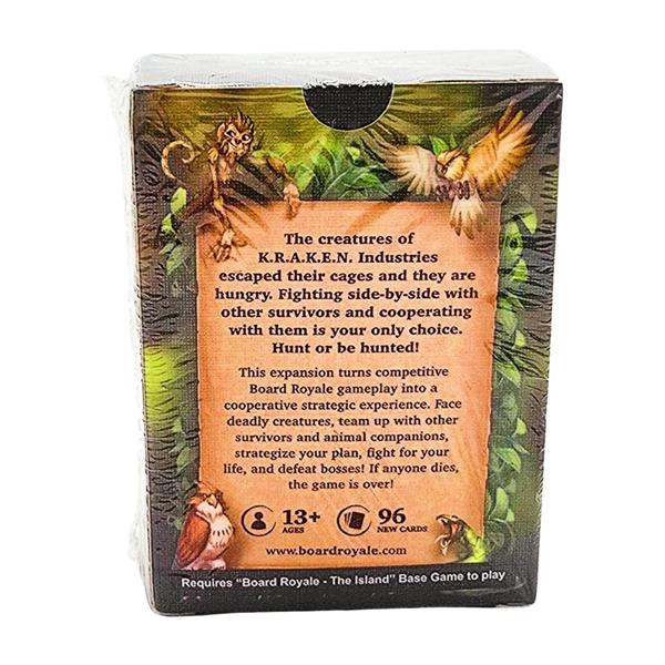 This expansion turns competitive Board Royale gameplay into a cooperative strategic experience. Face against deadly creatures, team up with other survivors and animal companions, strategize your plan, fight for your life, and defeat bosses! If anyone dies, the game is over!