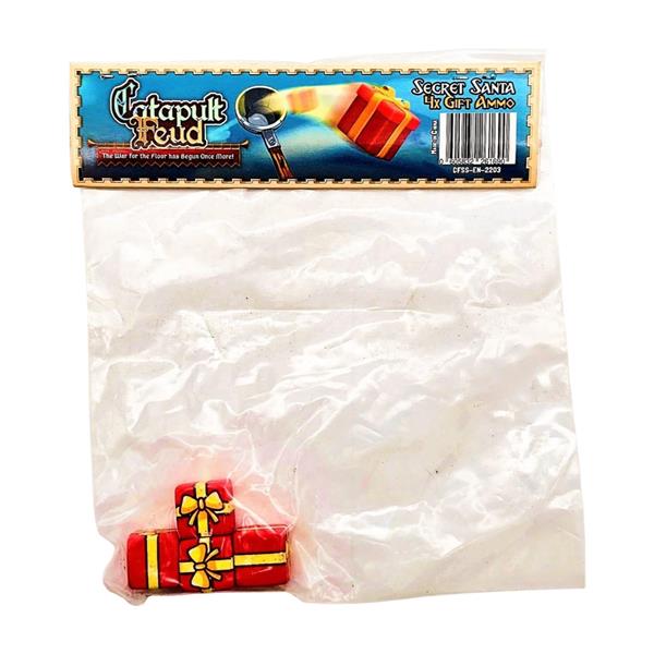 Each player gets one Secret Santa gift ammo. During your turn, instead of launching a boulder, you may launch the gift instead! In addition to any damage, if the ammo lands inside your opponent's castle, the closest troop picks it up and opens the gift. They are so moved by the kindness of the gesture that they decide to switch teams! Remove that troop from the enemy's castle, get a troop matching your color from the box and place them following the Troop Placement rules in your castle!