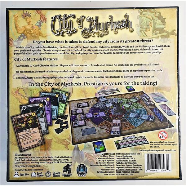 Welcome to the City of Myrkesh. Five districts, once divided with different goals and agendas for the city, must now stand together against the threat of destruction. Each player starts with a deck of ten ally cards and, on their turn, will send out their people to move through the city, recruit new allies and attack the monster that’s wreaking havoc.