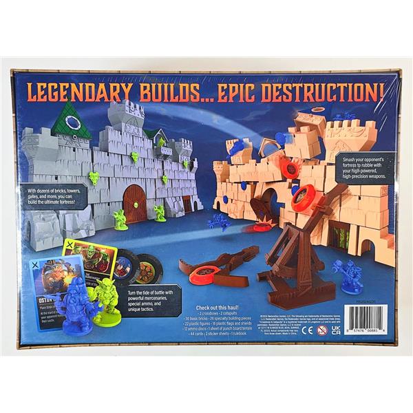Crossbows & Catapults: Fortress War is a restoration of Crossbows and Catapults, the 1983 classic game of kinetic warfare. Each player builds their castle, then players take turns using their weapons to fire discs at their opponent's castle, trying to knock over their warrior figures.