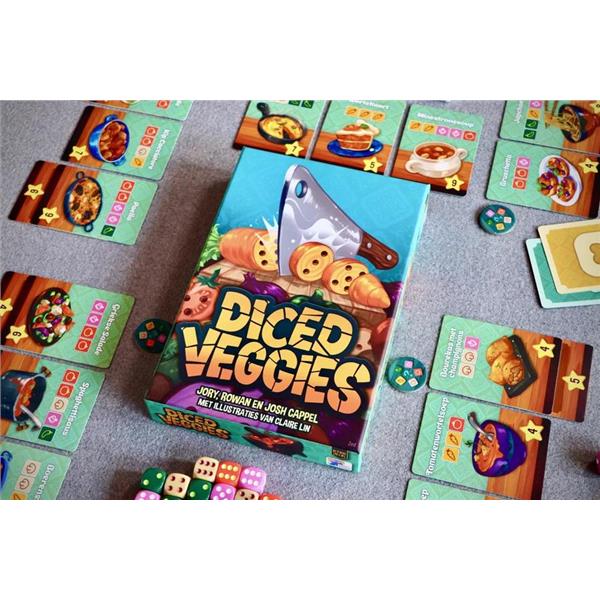 In Diced Veggies you take turns with the cleaver, slicing ingredient dice away from the shared chopping block and assigning them to the recipes you’re working on. This unique resource-gathering mechanism is the key to your scrumptious success. The particular veggies that your recipes require isn't your only consideration... you can only take a limited number of pips with each chop, and the right dice values can unlock all sorts of drool-worthy Hypes to boost a recipe's score!