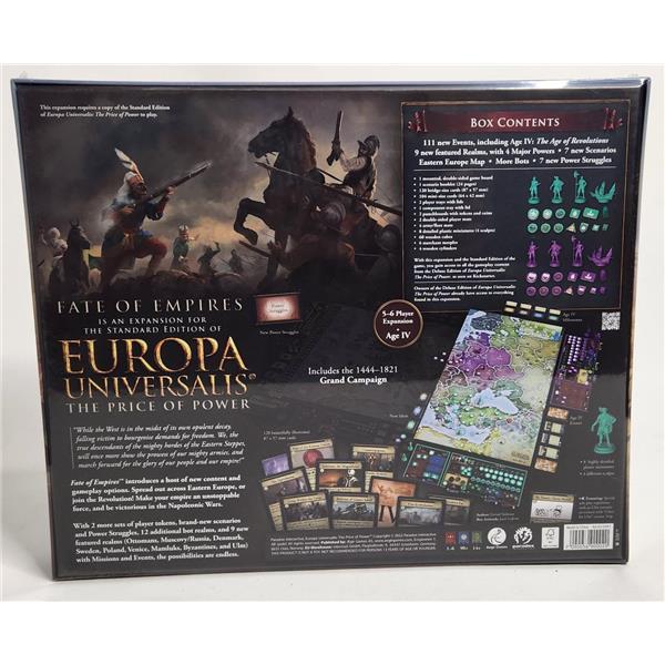 This is the expansion to the Standard Edition of Europa Universalis: The Price of Power, adding 5-6 players, the East Europe Map, and Age IV.