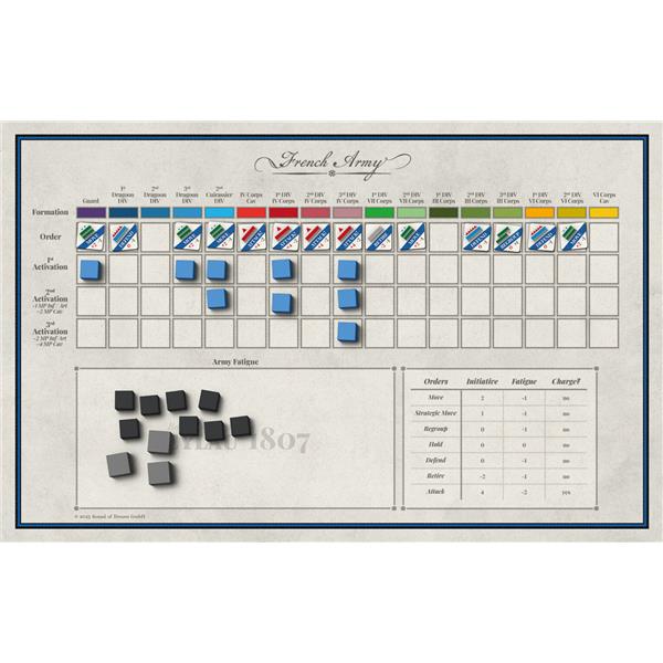 An innovative chit-based Command system, where players randomly draw activation chits determines which army may activate a formation, leads to highly interactive game play. Reaction follows action. We bring the chit-based Command system to a new level: In this games series, players decide which formation is activated when a chit is drawn. A formation may be activated several times per turn. But by each new activation it performs less effective.