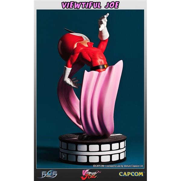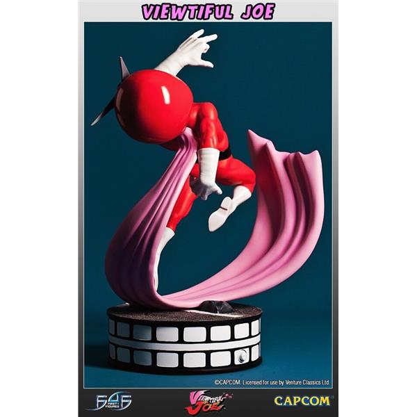 Viewtiful Joe is portrayed with the same comical appearance as seen in the series. The figure itself stands upon a detailed road surface in a dynamic pose, edged with a film-reel style design, tying in with Viewtiful Joe's strong movie themes. All of Viewtiful Joe's details have been captured in high quality, hand painted polystone, resulting in an awesome, striking 13.5 inch tall statue to add to the collection of any Capcom, or indeed Viewtiful Joe fan.