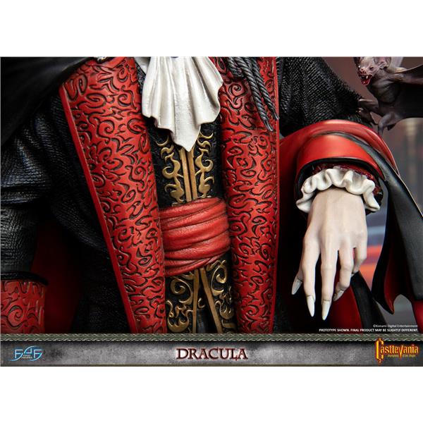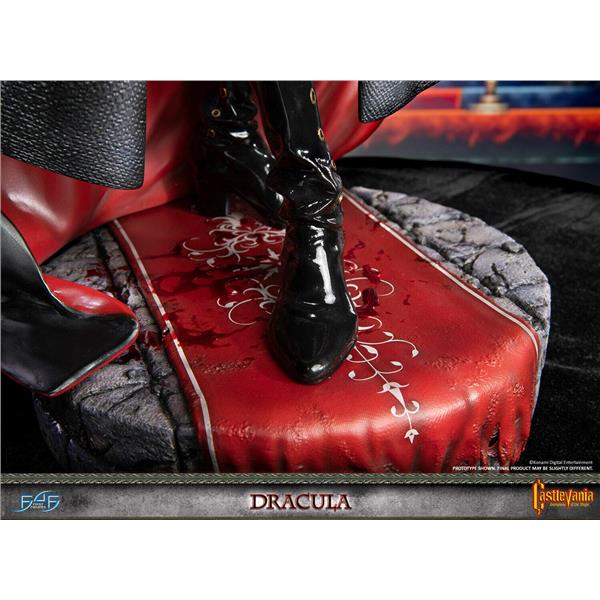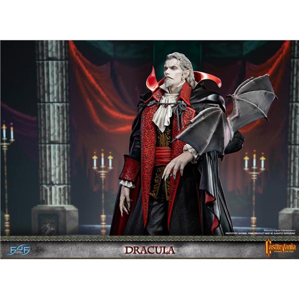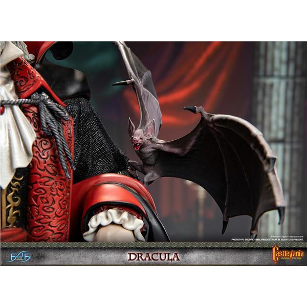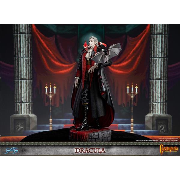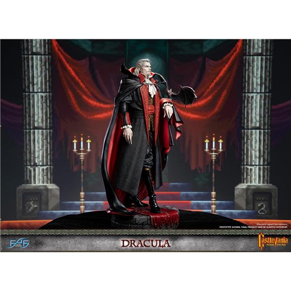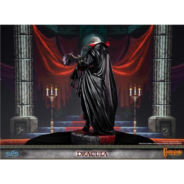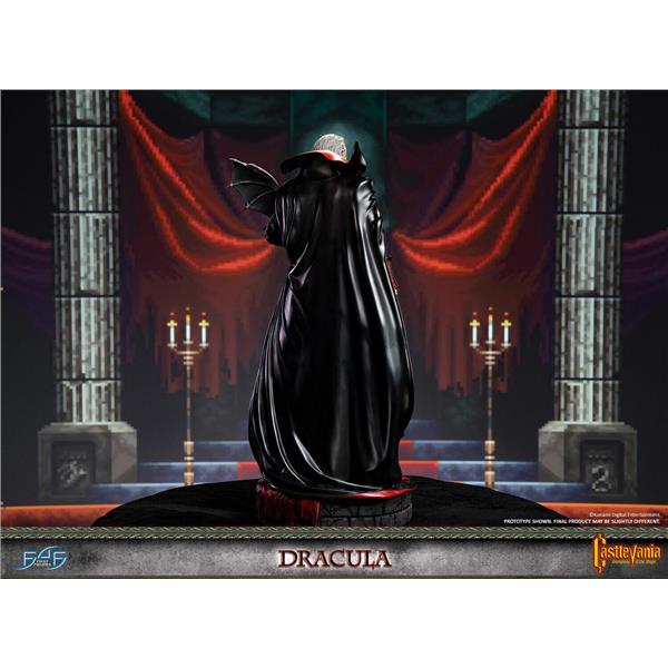 The character design is based on official artwork from the industry-defining Castlevania: Symphony of the Night. Dracula is seen striking a static yet exalted pose, with an intimidating gaze that manifests fear into the hearts of mere mortals. His garments are highly textured and detailed, with just the right amount of wrinkles in the right places to impart a level of realism to the statue.