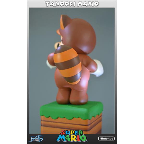 First 4 Figures is very excited to reveal Tanooki Mario from the hit-game 'Super Mario 3D Land', the first in an entirely new series of Super Mario statues. After collecting a Tanooki Leaf, Mario dons the Tanooki Suit thus granting him new abilities such as a glide and a powerful tail whip attack. We've captured him in his trademark pose from the game, shaking his tail and ready unleash the tail whip at any moment. The base that he is stood on is styled after the first world in the game with a rich green lawn atop striped brown soil.