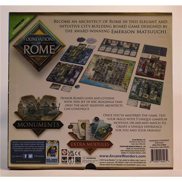 Foundations of Rome is the next, and biggest game to date, in the Dice Tower Essentials line and is designed by famed designer Emerson Matsuuchi.