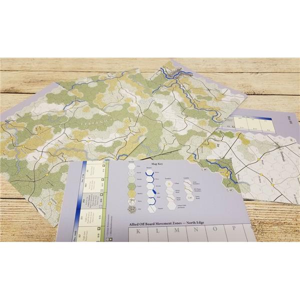 The game map is at the scale of one hex equals a mile and was developed using the 1-50,000 1943-1944 GSGS 4040 and GSGS 4507 topographical maps. Players will easily recognize the influence of the Bitter Woods game map as terrain is easily recognized and differentiated.