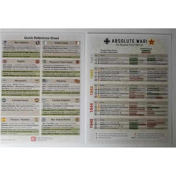 The design emphasis has been placed on making the game very player-friendly and manageable in its level of scope, difficulty and time of play. With a very low total counter count and density, this quick playing (while still realistic) simulation presents players with deep strategy meriting contemplation. A system of map areas has been adopted and movement has been streamlined. Combat is handled by the two decks of cards (one German and one Soviet) - meaning no combat tables or dice to roll. These cards are the crux of the game system offering even more variety than regular Combat Result Tables. Like in “No Retreat!” they are used to generate events and special game abilities (ex: Major Offensives, Partisan Raids, Siege Artillery, Increased Replacements, etc…) and now also effortlessly resolve all battle outcomes. The set-up for a campaign or a scenario will be lightning fast: in less than 10-15 minutes you can get the game going! This high degree of re-playability means that it will reward players' experience with increased skill.