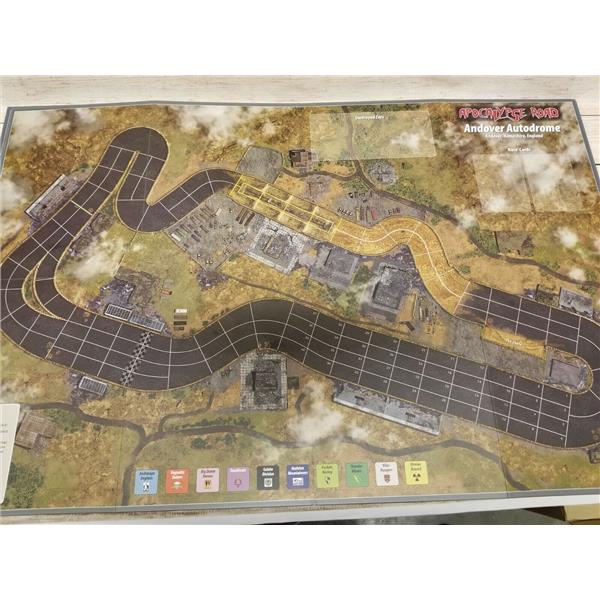 Apocalypse Road is a race game using the Thunder Alley/Grand Prix engine. Players attempt to score points by crossing the finish line (somewhat like roller derby) and by eliminating opposing cars. The first team to 15 points wins the event and gets a double portion of foodstuffs as a reward.