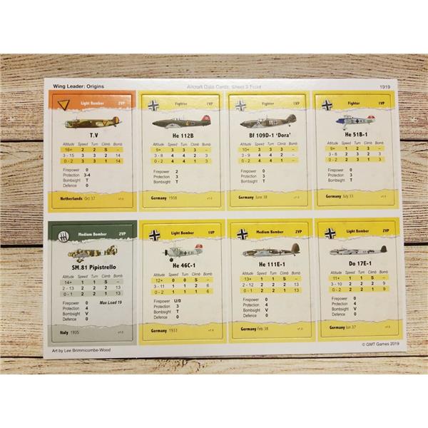 Wing Leader: Origins 1936-1942 is the third expansion for GMT's Wing Leader system. Origins dives into the thrilling battles of the inter-war and early-war period. This expansion matches biplanes against fast monoplanes in combat over Spain, China, and Poland. Nationalist CR.32s face off against 'Red' I-15s over Madrid. Soviet volunteers fly 'Chaikas' against Japanese 'Claudes' above China. Bf 109s dive into streams of British Wellingtons, Halifaxes, and Manchesters while defending battleships in Brest.
