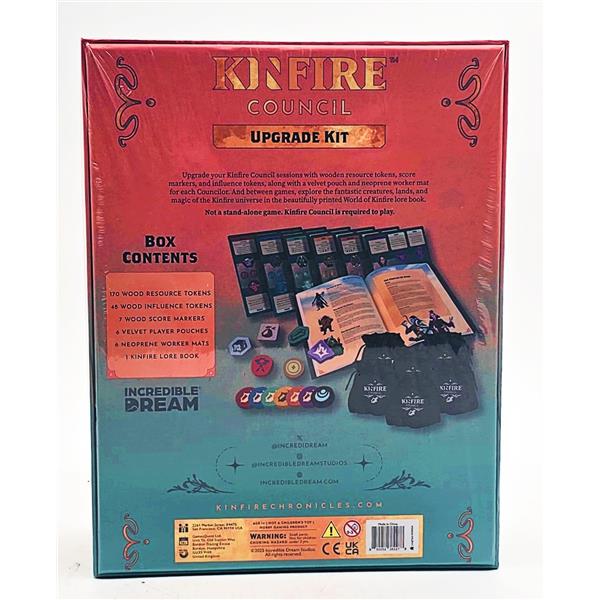 Upgrade your Kinfire Council experience with wooden tokens for every resource and neoprene playmats for your worker sheets. And between games, explore the fantastic creatures, lands, and magic of the Kinfire universe in the beautifully printed World of Kinfire lore book.