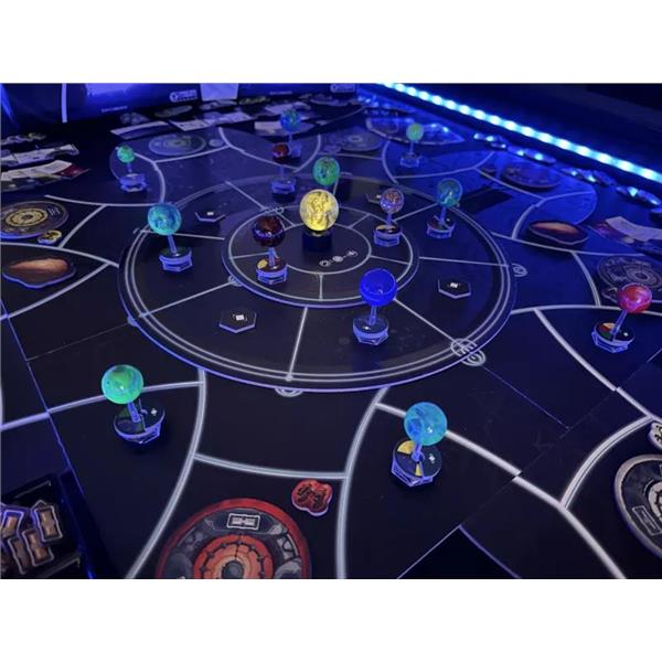 Last light is a fast paced 4x game with 3-D planets and a rotating board in which players playing asymmetrical alien races simultaneously gather light right before the heat death of the universe.