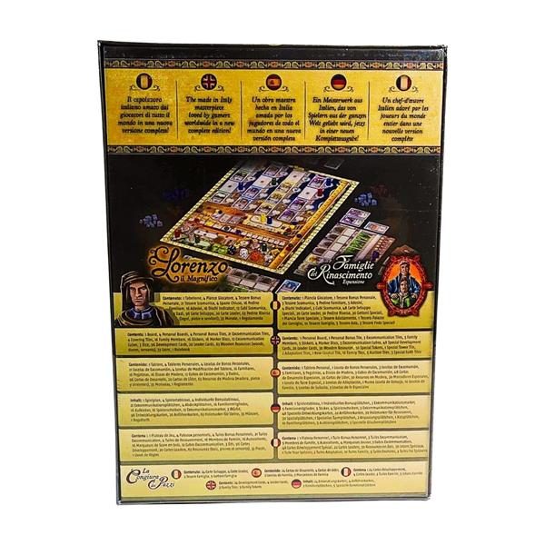 Lorenzo il Magnifico is a complex and strategic game with no luck dependence. Players will place their Family Members in different areas of the city to perform actions, but these Family Members are never the same as they change value every round. They will conquer new territories, sponsor magnificent buildings, encourage brave ventures and surround themselves with important characters. If they are smart and powerful enough, they can attract some of the most renowned contemporary celebrities and use their powers. With the expansion – Houses of Renaissance – included in the box, you can find a new player in the game and new mechanics that will greatly change the game each time you play Lorenzo il Magnifico.
