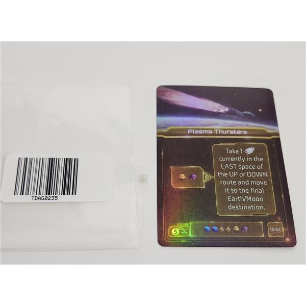 Every turn, players use their GigaCredits (GC = VP) to bid for the best space routes to and from the Moon. The slower the route, the more you can load on the ship. On the Moon, players simultaneously upgrade their bases and place their astronaut workers to produce the resources needed to maintain the base, as well as mine Moon goods to sell in Earth's bustling dynamic markets.