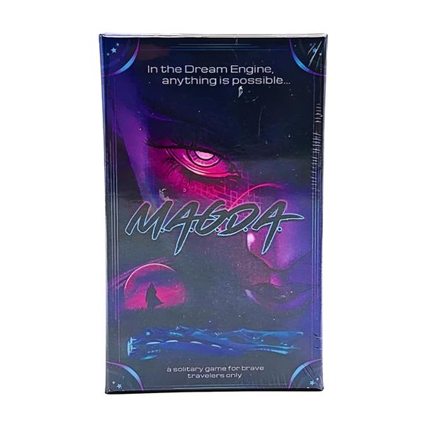 M.A.G.D.A. is a solo card game. Layout typically changes for each adventure as the game unfolds in front of you. The size of the cards are Tarot sized cards, as if to suggest your fortune is being told.