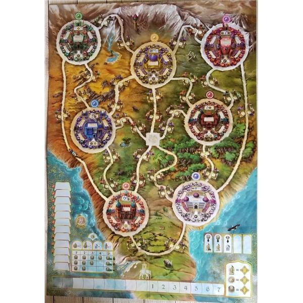 Maharaja is a new edition of the classic game by the authors Wolfgang Kramer and Michael Kiesling. In this new version of the game which supports 1 to 4 players and is enriched with new graphics and components, you build statues of your God of reference to please the Maharaja during their visit and score victory points at the end of the game depending on the majority you reach.