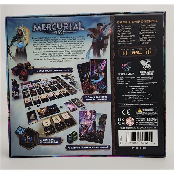 Mercurial is a card & dice-manipulation game themed on spellcrafting with combo & engine-building mechanics. Learn magical Alteration techniques to control the chaos of your elemental dice, and use these elements to combine lesser magicks into new and unknown spells. Your combined spells can either inflict ruin, restore life, or something more — use them to perform heroic deeds, ranging from helping your allies defeat dangerous beasts, to finding a path for stranded travelers lost in the strange land of Valanyr.