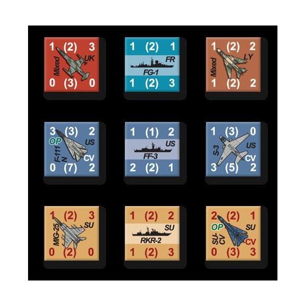 Aircraft units represent one to six squadrons, with the counter displaying the primary type of aircraft. Ship units represent one fleet aircraft carrier or battleship and “divisions” of four cruisers or nuclear-powered submarines with destroyers being represented in squadrons of six to eight destroyers or non-nuclear subs. Other ship types are represented at the division level and represent various numbers of ship types. On the map, each inch equals 20 miles. Each turn represents from one day to one week of activity, depending on the level of activity. Sixth Fleet is based on Red Dragon Rising. Changes have been made based on the situation in the Mediterranean during the Cold War.