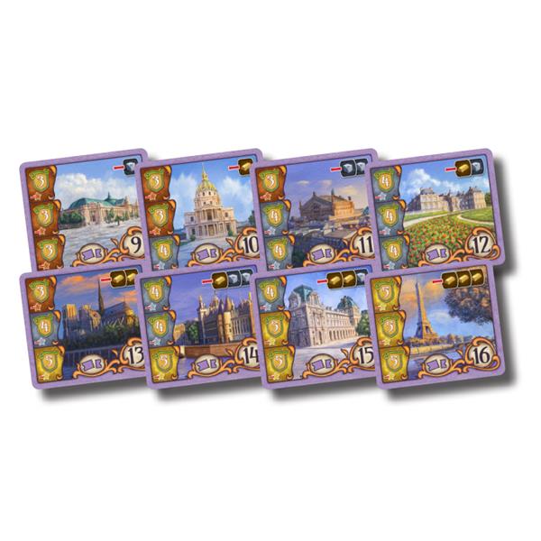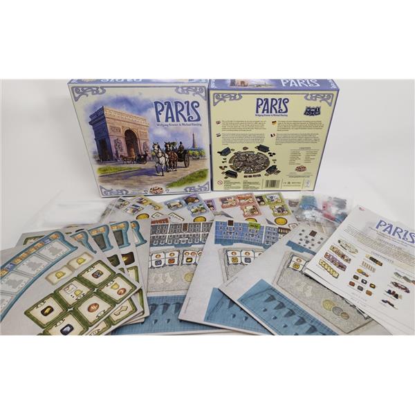 Paris is a typical medium-weight Kramer and Kiesling Eurostyle-game with straightforward gameplay, short player turns, and an ingenious point salad mechanism. You mainly score points by obtaining the right buildings and collecting the right bonus cards.