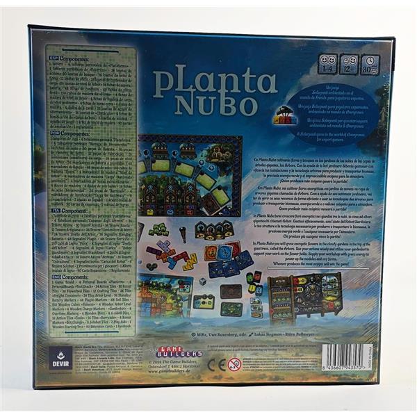 In Planta Nubo players grow energy-rich flowers and plants in cloudy gardens – the treetops of the Arbors. Deliver them to bee-like airships which transport them to the biomass converters to be transformed into green energy. Sow woods on the freshly harvested soil. Energize helpful modules while your woods, your bots and the Arbor produce desperately needed oxygen. Make good use of your tools to perform actions and use your garden bot to help you grow flowers. Supply your platform bot with energy to use modules and operate Oxyfarms. Turn your Arbor into the best oxygen production facility! If you produce the most oxygen by the end of the game you win!