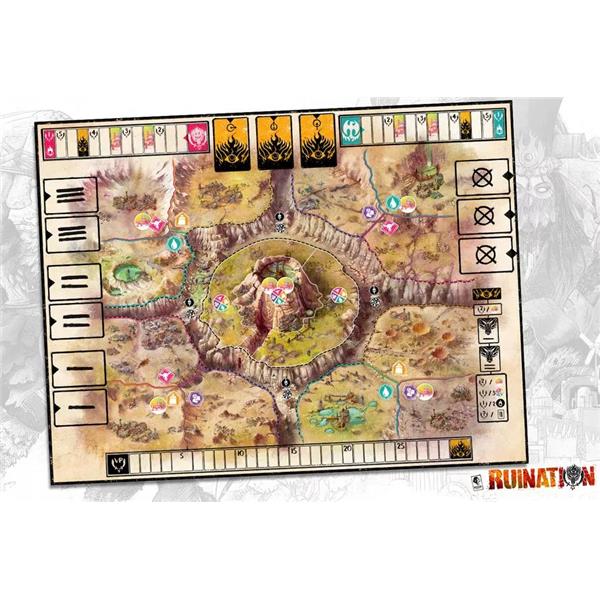 Ruination is a 2-4 player area control and civilization game set in post-apocalyptic Eurasia. Using an innovative action system, players will gather resources to acquire advantages from the wreckage of the world before, bolster their armies with powerful exiles, and march across The Wasteland to war. Only the strongest and most canny horde will rule beside the Khan in this new world.