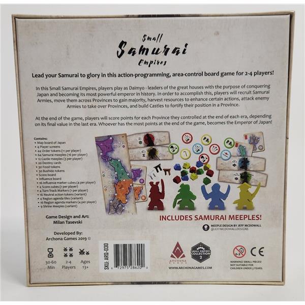 Small Samurai Empires is an action-programming area-control game for 2-4 players, where players are fighting for control of Japan with their armies of Samurai!