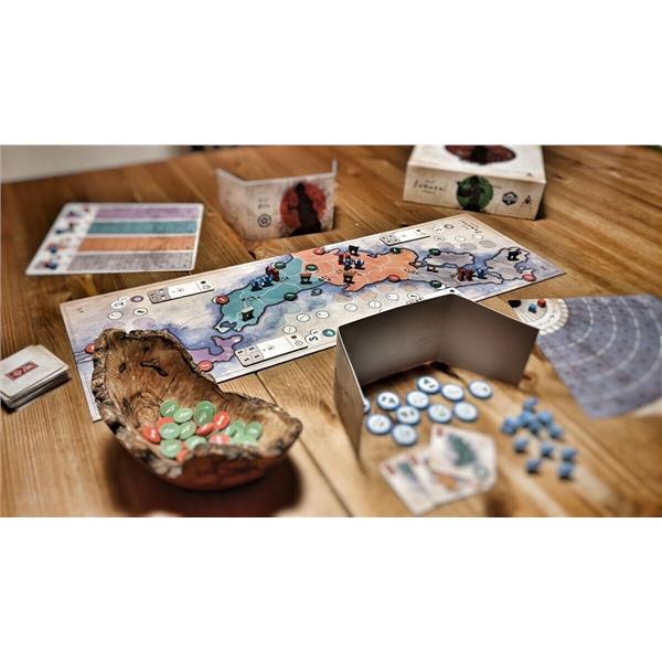 At the end of the game, players will end up with an amount of victory points depending on which provinces they controlled at the end of each era and their end game value. Whoever has the most points, becomes the Emperor of Japan!