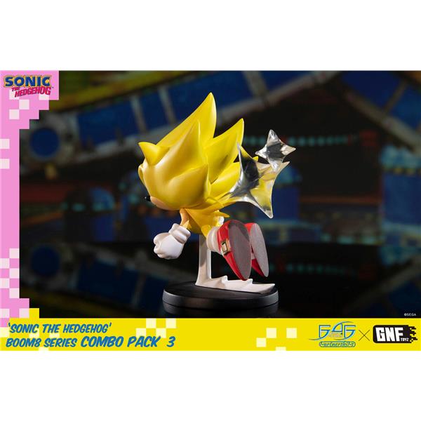 - Boom8 Vol 6 - Super Sonic in a dashing pose attached to a round black base.