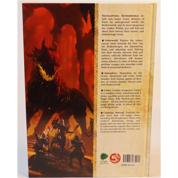 Daily Life in the Depths. How do you live, eat, breathe, and drink when you live without sunlight? The Netherworld is a world of its own, with its obstacles and limitations, but also its opportunities, owing to a dense magic. Protective seals, roots of Eana, and bioluminescent plants make up a wondrous and radically new environment for whoever ventures in these depths. Each element of the Netherworld is given pride of place through memorable scenarios or scenes featured in rich adventure hooks.