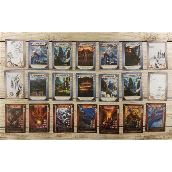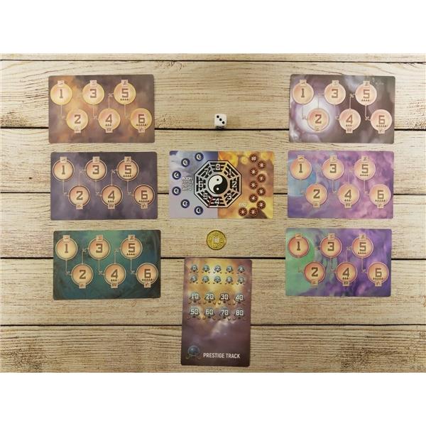 This is a 'blind bidding' game that revolves around the legendary archer from China, Hou Yi, who shot down 9 Suns and saved China from scorching heat. Players are Primordials who draw their energy from the 10 Suns. Before the Suns all disappear, players rush to gain enough prestige to secure a permanent position among the Gods. The game features famous locations in China like the Great Wall, Xi An, and many others. It also features other Gods and legends of ancient China, including Chang'E and the Jade Rabbit.
