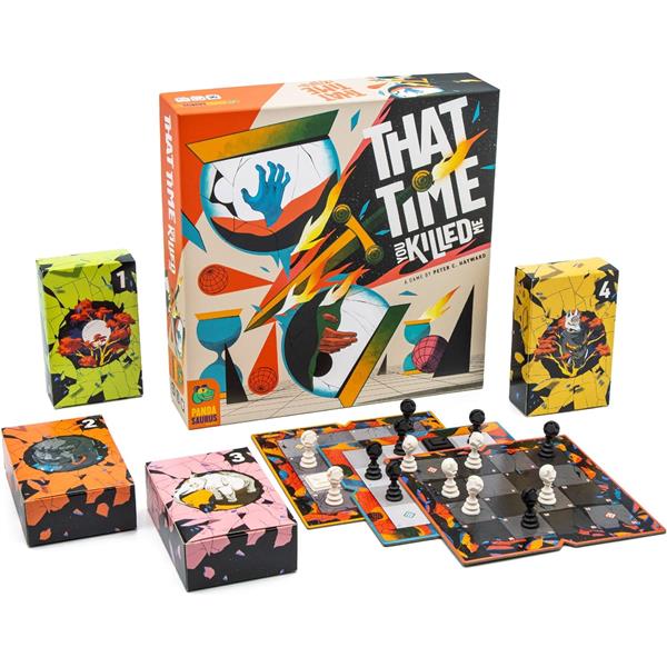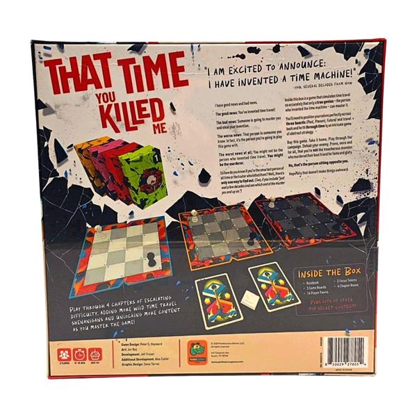 That Time You Killed Me is an abstract narrative game of time and murder that introduces new scenarios with unique rules and components as you play. As with any game about mucking about across time, you must play through this content in a strict, unalterable order.