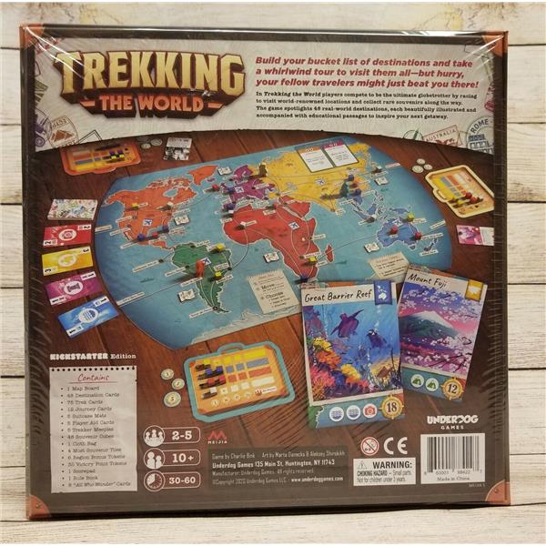 In Trekking the World 2-5 players compete to be the ultimate globe trotter by racing to visit world-renowned locations and collect rare souvenirs along the way. The game spotlights 48 real-world destinations, each beautifully illustrated by artists from around the globe and accompanied with educational passages to inspire your next getaway. Each piece was created to remind us there's a great wide world beyond the confines of our everyday lives, waiting for us.