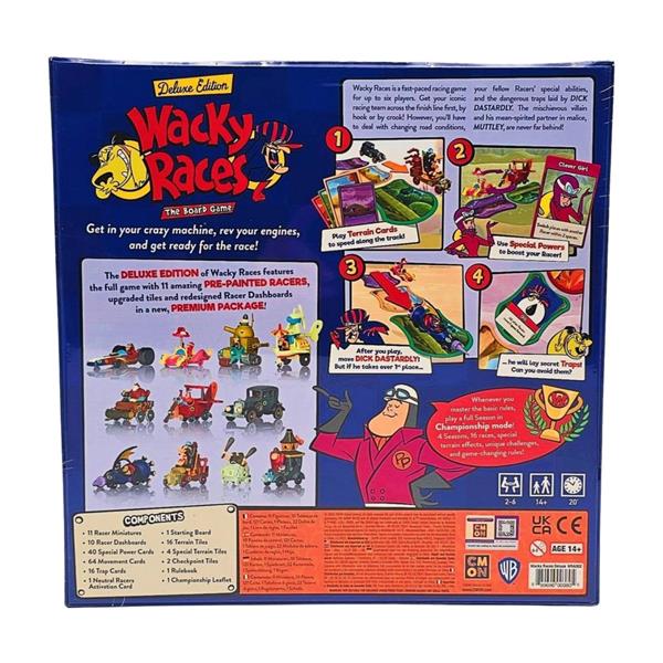 Wacky Races: The Board Game will be released in both a regular and a deluxe edition, with the deluxe edition including pre-painted miniatures, while the regular edition will have one-color miniatures.
