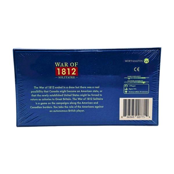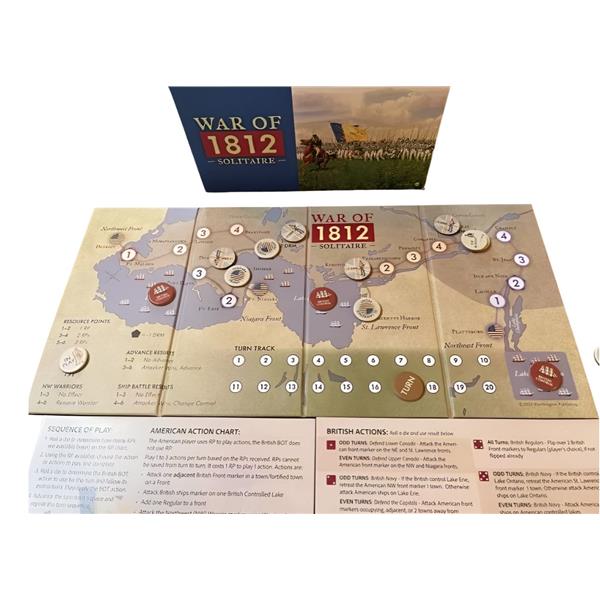 War of 1812 Solitaire places you in command of American forces trying to invade and occupy Canada. The British AI side defends the empire. Both sides have armies on fronts in play, ships on the Great Lakes and must deal with Native American warriors and their influence in the Northwest.