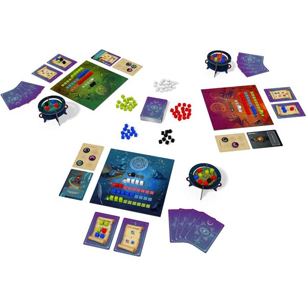 Being a witch is all about wielding powerful magical ingredients — but a witch can wield only so much power before everything blows up in their face. Choose your recipes wisely to clear your workbench and stick others with too much raw material because the first player to overflow their nemesis' cauldron with enough ingredients wins!