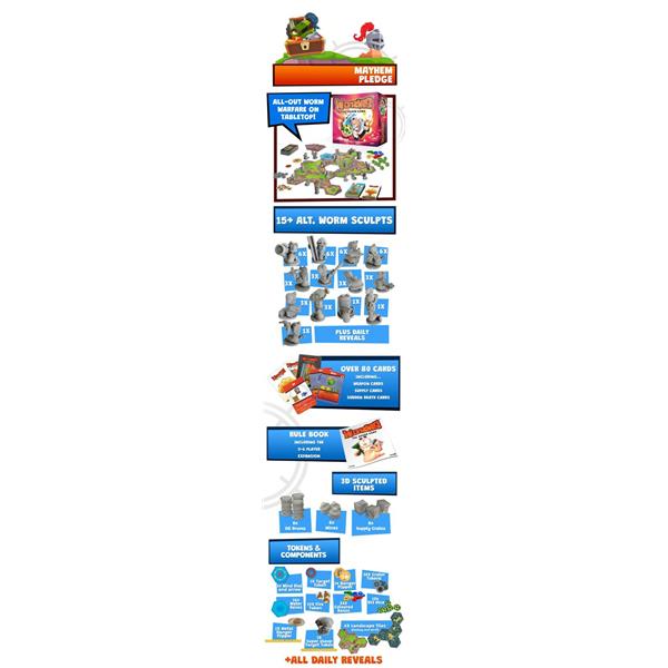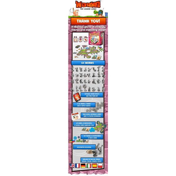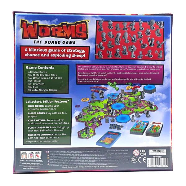 Featuring a hex-based landscape that your Worms will move around, collecting crates, dodging mines, and getting into position with the right weapon at the right time to unleash total tabletop hilarity on your foes. Keep your team alive, whittle down the opposition, and win the day!