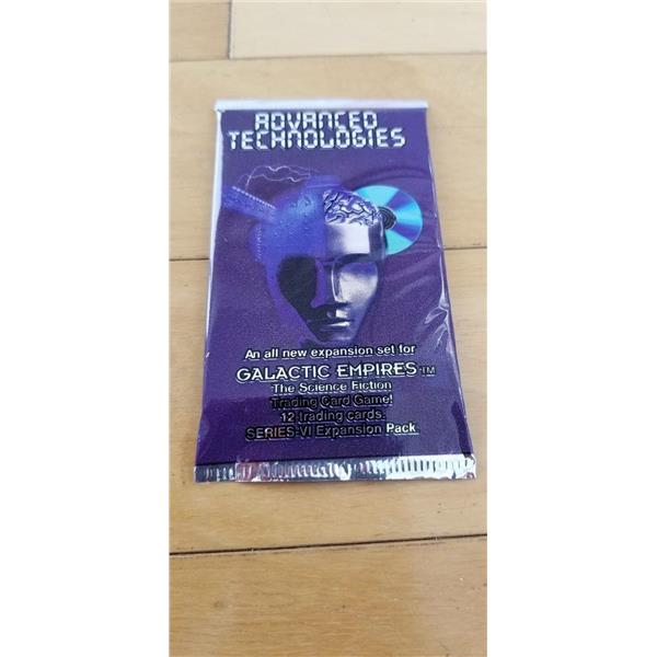 This is a sealed, untouched display of 36 Booster Packs Series VI Advanced Technologies Edition to build out your Galactic Empires decks or just to collect the cards for their incredible Sci Fi Art.
