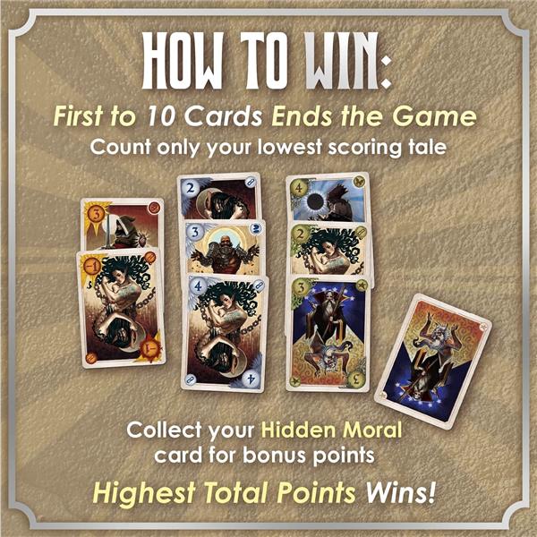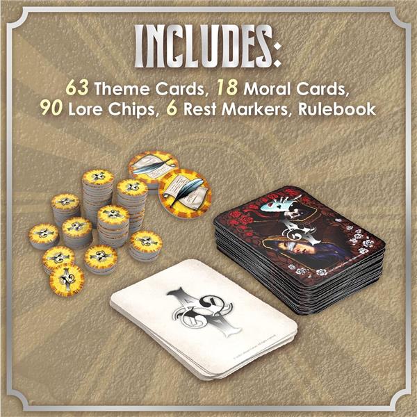 An allegory tells a captivating story while hiding a deeper, meaningful moral underneath. Compete with others as renowned authors, each scribing a trilogy of tales: Nature, Energy, and Spirit. Master the use of lore to incorporate powerful themes in your tales. At game's end, you will be rewarded for weaving a hidden moral throughout all your tales, but only the most concise tale shall become a literary classic for the ages!