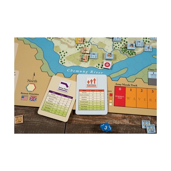 New features will include a 1-page matrix-style player aid listing all the unique capabilities for the Indian player in Newtown, making it easier to keep up with those capabilities without having to refer to the rule book. The Battle of Oriskany, the bonus game included with Newtown, features a new scenario in which General Benedict Arnold leads a relief force to the rescue of Fort Stanwix and introduces opportunity cards to the game for the first time. Also included in the Tri-Pack is the Solitaire Tactics Card player aid designed by Joel Toppen that was released in C3i magazine Nr 22. Players have found this tool most helpful when playing BoAR games solitaire. Finally, the Germantown rulebook will receive a needed upgrade to clarify some ambiguities in the original rule set.