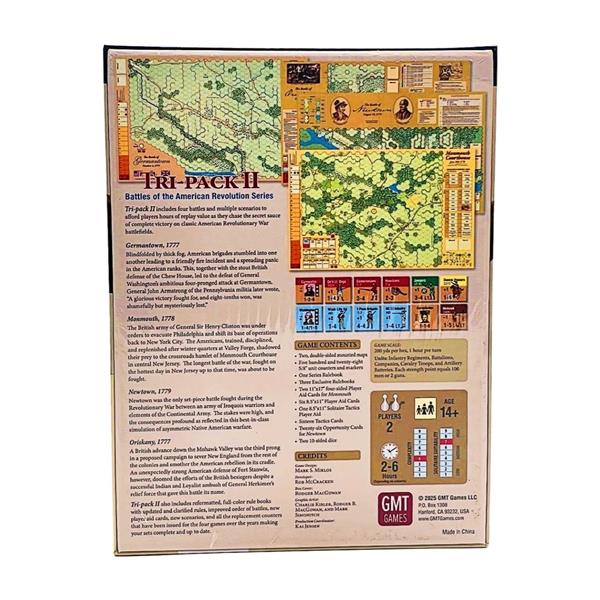 GMT Games and designer Mark Miklos are happy to announce the long awaited and much anticipated second Tri-Pack in the award winning Battles of the American Revolution series. You spoke, and we listened. Hundreds of players responded to polls conducted on various social media and other sites, and the votes are in. You asked for Monmouth Courthouse, Germantown, and Newtown to be included in American Revolution Tri-Pack #2, and we are proud to bring them to you.