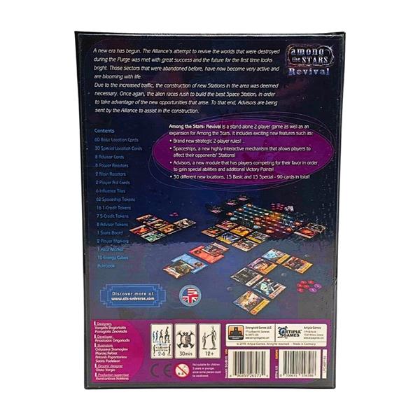 Among the Stars: Revival, a new expansion for Among the Stars, can also be played as a standalone game for two players! This game features new mechanisms that add more interaction to the game and more things to consider when drafting a card. New elements in the game include: