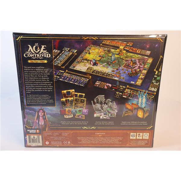 Inspired by modern classics of the genre, An Age Contrived feels familiar while adding new twists that will surprise you. Construct a mortal world on your tabletop while competing with your friends.