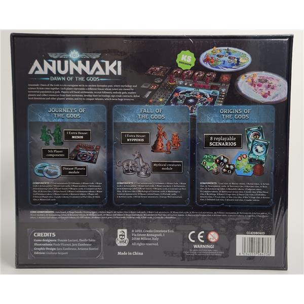 Anunnaki: Dawn of the Gods is a 4x eurogame by Simone Luciani and Danilo Sabia, set in an ancient dystopian past, where mythology and science-fiction come together. Each player represents a different House whose rulers are viewed by terrestrial population as gods. Players build bases, recruit troops, embody gods, explore the territory, develop their own technology, sign trade contracts, defeat local dominions and other players' armies, trying to conquer Atlantis, which owns huge treasures.