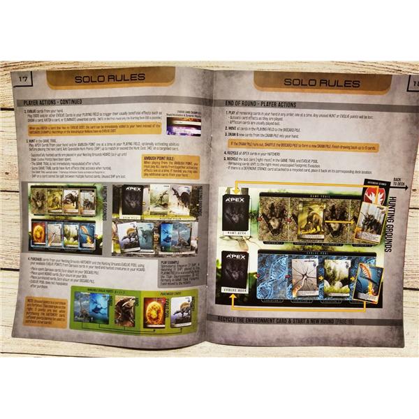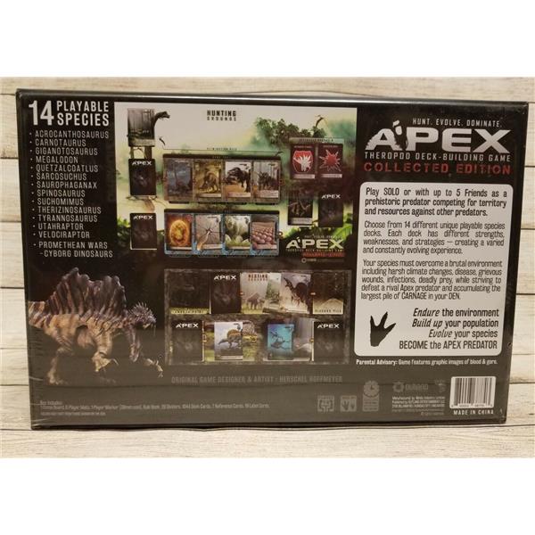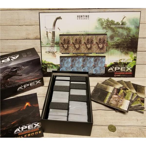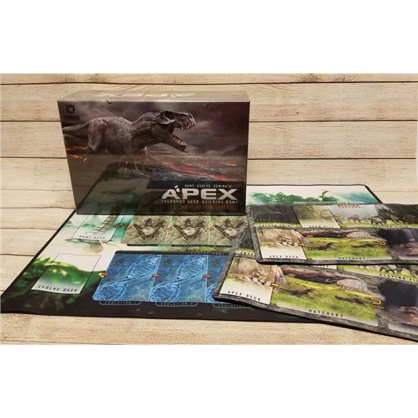 Apex is a deck-building game, played solo or with up to 3* friends. You play as a prehistoric predator competing for territory and resources against other predators. Each playable species has a unique deck to master. Each deck has different strengths, weaknesses, and strategies-creating a varied and constantly evolving experience.